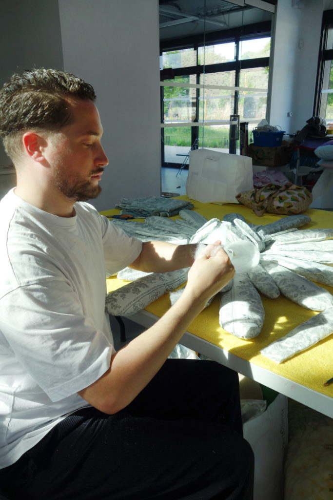 Pendant le temps de création (avril et mai 2025), les membres du collectif BIENVENUE ont déménagé leurs ateliers aux Sheds. Depuis leurs sorties des Beaux-Arts de Paris, c’est la première fois qu’iels se sont retrouvés à travailler de nouveau dans le même espace : cette proximité a favorisé une réelle porosité de leur travail plastique et les échanges avec l’équipe des Sheds autour de l’exposition.