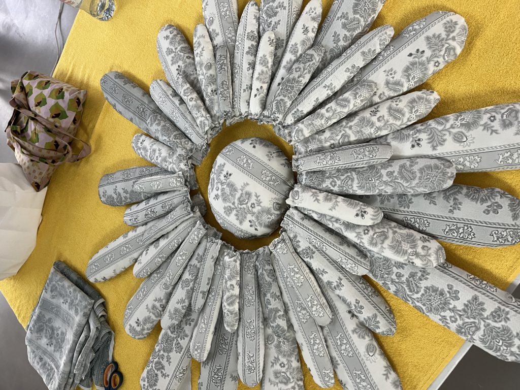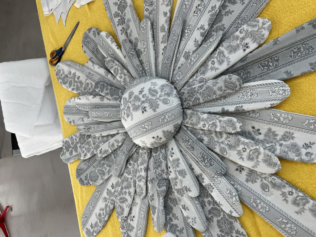 Les céramiques de Margot donnent à voir de nouveaux symboles emblématiques et de nouvelles icônes : les doigts et cœurs s’entremêlent et les étoiles enfantines se parent de visages grinçants. Richard compose le tableau d’une vie rêvée d’un personnage à son réveil, ainsi qu’une installation textile en souvenir d’une vie passée en hommage à sa grand-mère. À travers son miroir en lambeaux serti de perles et son costume hybride de fourrure et de velours, Lucas imagine ses mues et celles de ses ami·es, questionnant ces identités multiples. Louise-Margot présente un ensemble de sculptures oniriques en résine et silicone, inspirées des décors domestiques de son enfance, évoquant la fragilité de la mémoire et des